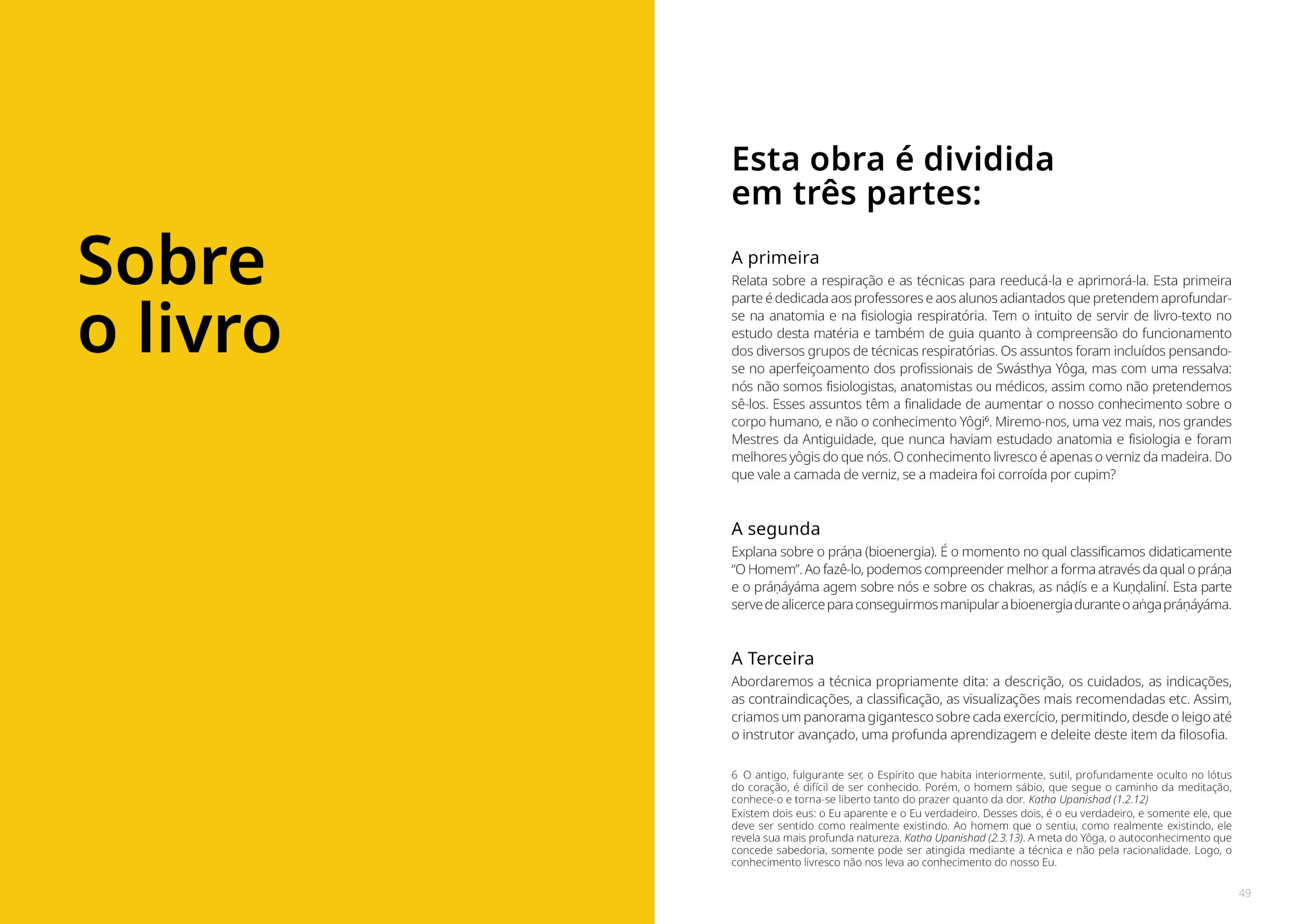 obra dedicada ao estudo da técnica milenar conhecida como Pránáyáma, oferecendo uma leitura acessível, mas profunda, indicada para estudantes e professores. Reúne comentários, referências históricas, bibliografias e orientações práticas, completamente inserido no contexto do SwáSthya Yôga.